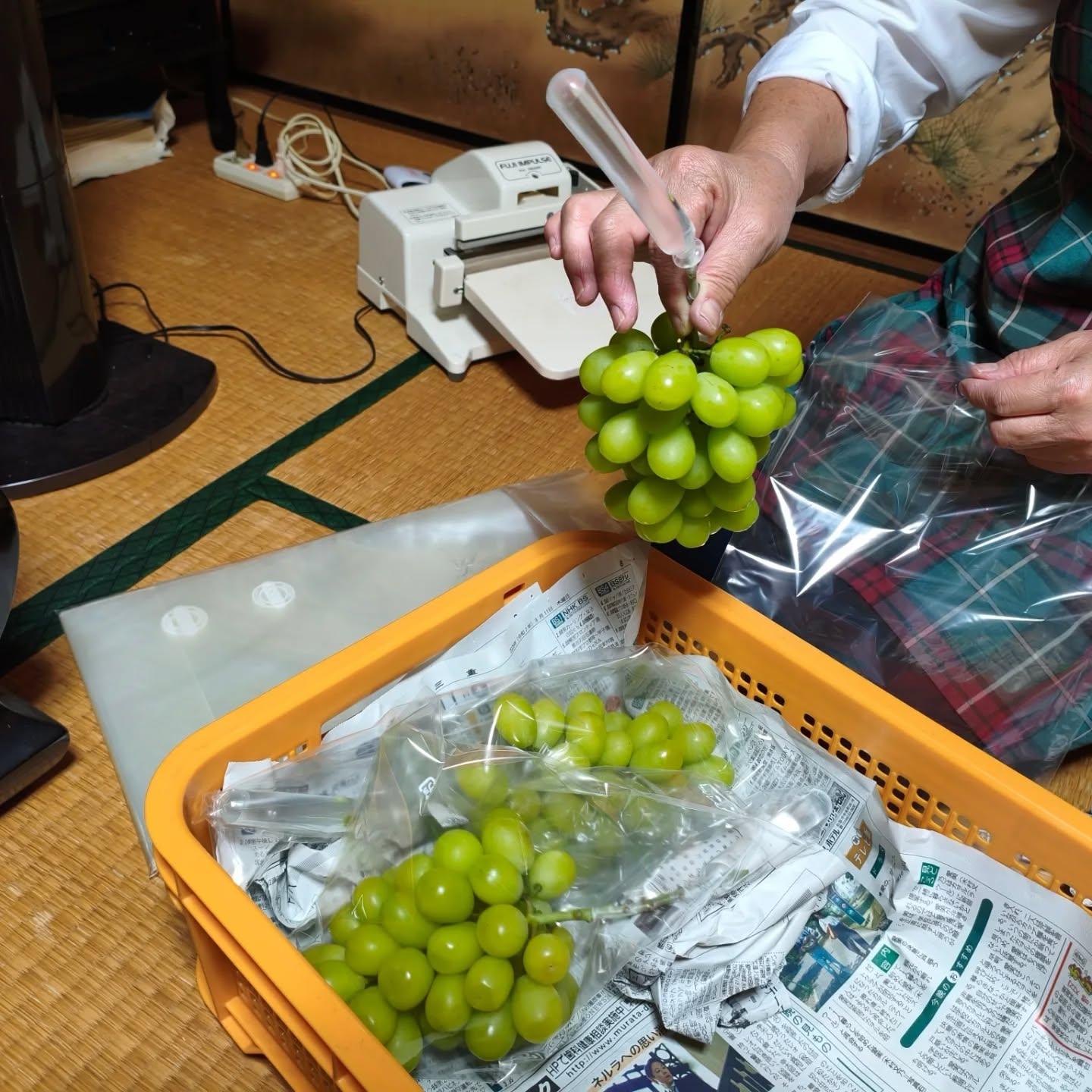 今晩よりクリスマスシャインマスカット保存用をつくり始めました。