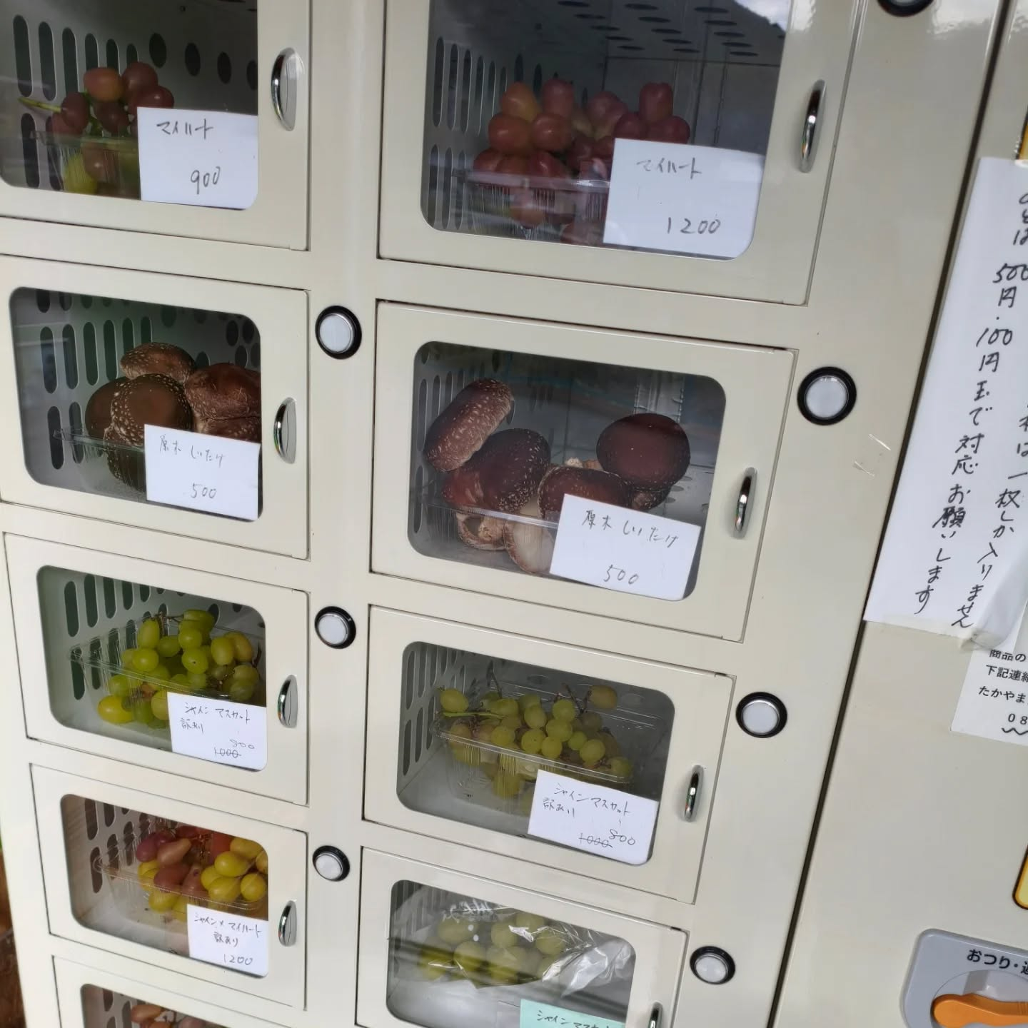 本日30日 朝柄自販機にマイハートと原木椎茸が入りました。